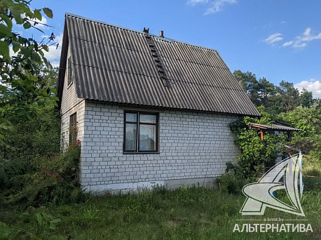 Садовый домик с мансардой 1994 года постройки в живописном пригороде г. Бреста. Построен из керамического кирпича, основание - ленточный монолитный фундамент; кровля - шифер. Общая площадь 62,4 кв.м. По плану три комнаты и кухня расположены на разных уровнях.