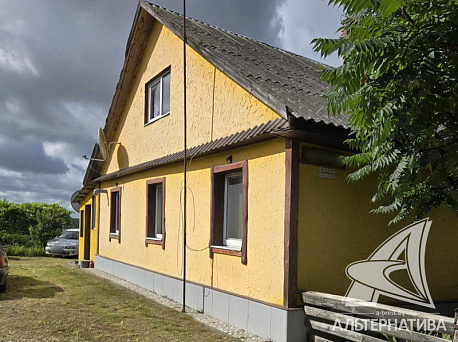 Одноэтажный жилой дом, расположенный в деревне Жабинковского района. Наружные стены комбинированные 50/50: из строительного бруса и газосиликатных блоков, фасад утеплен пенополистиролом, оштукатурен и окрашен; двускатная крыша, кровля – шифер. Установлены стеклопакеты. Общая площадь дома 43,5 кв.м. По плану в доме две жилые комнаты, кухня 12,6 кв.м, раздельный санузел, топочная, кладовая и коридор. Частично сделан ремонт с помощью комбинированных материалов: балочные потолки, полы – дощатые, стены оклеены обоями. Санузел облицован плиткой, установлена сантехника, душевая кабина.