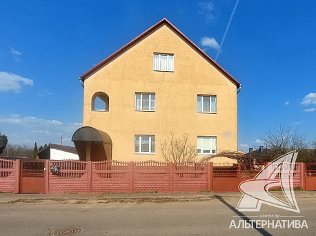 Двухэтажный жилой дом с подвалом 1996 года постройки в агрогородке Брестского района. Дом построен из газосиликатных блоков в соответствии с функциональным проектом. По периметру фасада, облицованного силикатным кирпичом, произведено утепление пенопластом 10 см; кровля - шифер. Общая площадь 353,9 кв.м, жилая 133,4 кв.м. На первом этаже расположены: гостиная 31,6 кв.м, кухня 18,3 кв.м, жилая комната, просторный холл, раздельный санузел; на втором этаже – четыре спальни с лоджией размещены вокруг общего коридора. В подвальном этаже – гараж, котельная и кладовая. Помещения в жилом состоянии, в ходе ремонта использованы комбинированные материалы. Сантехника и бытовая техника обеспечивают комфортные условия для проживания.