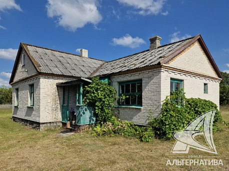 Одноэтажный жилой дом 1975 года постройки в пригороде Кобрина. Стены из газосиликатных блоков, фасад облицован силикатным кирпичом, кровля – шифер. Общая площадь 83,6 кв.м. По плану три жилые комнаты расположены в глубине дома, самая просторная и светлая – зал площадью 28,2 кв.м. с тремя окнами, кухня 10,8 кв.м, кладовая и коридор. Дом в стадии реконструкции, помещения подготовлены под ремонт.