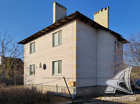 Двухэтажный жилой дом 2014 года постройки, расположенный в северо-восточной части г. Бреста. Просторный коттедж с эркерами построен из газосиликатных блоков, фасад обшит силикатным кирпичом; кровля – металлочерепица. Установлены окна ПВХ. Общая площадь 248,8 кв.м, жилая 82,4 кв.м. По плану на первом этаже расположены застекленная веранда, гостиная 23,3 кв.м, кухня 16,8 кв.м, жилая комната, санузел, топочная; на втором этаже – три просторные спальни с гардеробной и раздельный санузел. В цокольном этаже находятся гараж и кладовые помещения. Комнаты в жилом состоянии обставлены мебелью и бытовой техникой с учетом параметров помещений. Для внутренней отделки использованы комбинированные материалы: окрашенные, натяжные потолки 2,68 м, полы – ламинат, в коридоре и кухне - плитка, стены оклеены обоями, частично – декоративно окрашены. В санузлах, облицованных керамической плиткой, установлена необходимая сантехника, ванна.