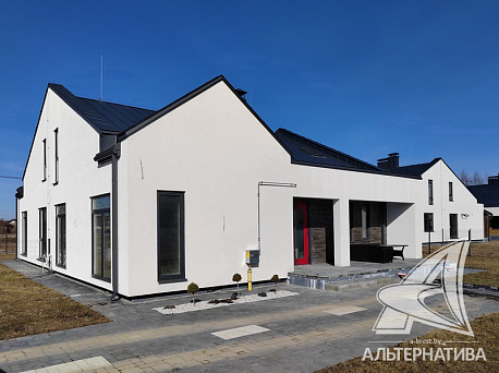 Мансардный таунхаус под отделку в юго-западной части г. Бреста. Стены дома из газосиликатных блоков, фасад утеплен пенополистиролом, оштукатурен и окрашен; фальцевая кровля. Установлены окна ПВХ. Общая площадь 162,7 кв.м, жилая 89,3 кв.м. Просторный дизайн-проект европейского образца: четыре изолированные жилые комнаты размещены на разных уровнях, самая просторная – гостиная 40,4 кв.м. с кухонным оборудованием и выходом на террасу через французские окна-двери, в доме несколько санузлов, спальни дополнены вместительными гардеробными, вспомогательные помещения. Стены оштукатурены, ошпатлеваны, полы – бетонная стяжка, потолки 2,81 м – без отделки перекрытия. Смонтирована электропроводка, установлены радиаторы отопления, частично - сантехника.