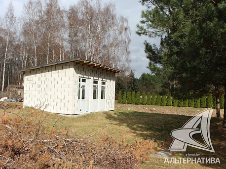 Земельный участок площадью 0,1581 га с коробкой дома в агрогородке Брестского района. Коробка жилого дома построена в 2024 года постройки: основание - ленточный монолитный фундамент, стены из газосиликатных блоков, кровля – металлопрофиль, окна ПВХ. Общая площадь 25,1 кв.м. Небольшой домик для отдыха и хозяйственных нужд.