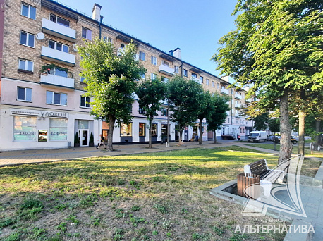 Трехкомнатная квартира на первом этаже 5-этажного кирпичного дома 1960 года постройки в центре города. Из окон в деревянных рамах открывается вид на разные стороны, на улицу Машерова. Общая площадь 55,0 кв.м, жилая 38,0 кв.м. Смежная планировка: две спальни расположены в торце коридора напротив друг друга, проходной зал 16,0 кв.м, кухня 6,4 кв.м, санузел совмещенный в коридоре. Имеется подвальное помещение.