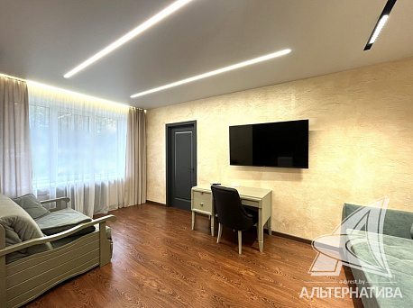 В квартире сделан хороший ремонт 2025 года, полы - ламинат. В санузле, облицованном современной керамической плиткой, заменены сантехнические трубы, сантехника. Проведена новая электропроводка. Комнаты обставлены корпусной и мягкой мебелью, входящей в общую стоимость, в кухне - встроенный гарнитур с бытовой техникой. Центральную часть города отличает высокое качество представляемых услуг, полноценный сервис сочетается с богатым озеленением и многообразием архитектурных форм. В пешей доступности набережная р. Мухавец, живописные аллеи и улочки, известные исторические памятники, храмы, библиотеки, Брестский академический театр драмы, фитнес-центры, салоны и уличные кафе.