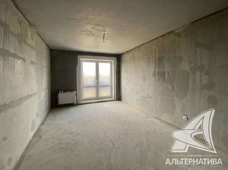 Однокомнатная квартира без внутренней отделки на восьмом этаже 11-этажного панельного дома 2025 года постройки в северо-западной части г. Бреста. Стеклопакеты, входная дверь - металлическая. Общая площадь 44,48 кв.м. Пропорциональная планировка: жилая комната 17,09 кв.м, вместительная кухня 11,0 кв.м. с выходом на застекленную лоджию, санузел раздельный в коридоре.