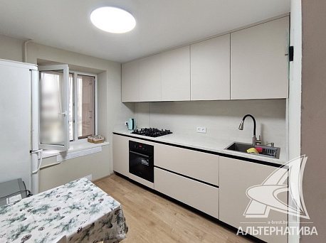Квартира с хорошим ремонтом оформлена в светлых тонах, внутреннее пространство организовано с учетом функциональности жилых и общих зон. В комнатах окрашенные потолки, полы – ламинат. Санузел облицован современной керамической плиткой, заменена сантехника. С помощью кондиционера регулируется микроклимат. Новому собственнику остаются кухонный гарнитур, встроенные шкафы в прихожей, двух спальнях и на лоджии. Остальная мебель - по согласованию. Домофонная система. В подъезде поддерживается порядок. Уютный и достаточно тихий центр г. Бреста представляет собой смешанную застройку, отдельные кварталы целиком занесены в список культурного наследия города. Улица Советская – пешеходная зона, является вторым «Арбатом», неплохо сохранившим старинную архитектуру. В пешей доступности Брестский городской парк с аттракционами, набережная р. Мухавец, живописные аллеи и улочки, известные исторические памятники, храмы, Брестский академический театр драмы, Музей истории города, фитнес-центры, салоны и уличные кафе.