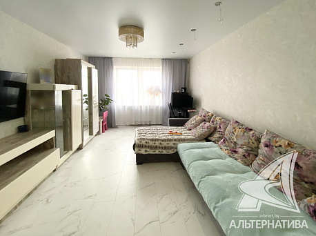 В квартире светло и аккуратно, произведен хороший ремонт: натяжные потолки оснащены точечной подсветкой, полы - ламинат и плитка, стены оклеены обоями, есть имитация каменной кладки. Санузел облицован современной керамической плиткой. Новому собственнику остаются кровать, шкаф в прихожей, в кухне - встроенный гарнитур, варочная поверхность и духовой шкаф (белый шкаф из прихожей - по согласованию). Домофонная система. Подъезд оборудован грузопассажирским лифтом. Тамбур рассчитан на три квартиры. Во дворе организована игровая детская площадка, есть шлагбаум на парковке. Центральную часть города отличает функциональное разнообразие и мобильность, удобная транспортная инфраструктура. Рядом остановки, детский сад, магазины «На болоте», «Копеечка», аптеки, почта, Центр олимпийского резерва по футболу, школы №6 и №19, Тришинская школа-интернат, станция "Брест-Полесский", филиал Беларусбанка.