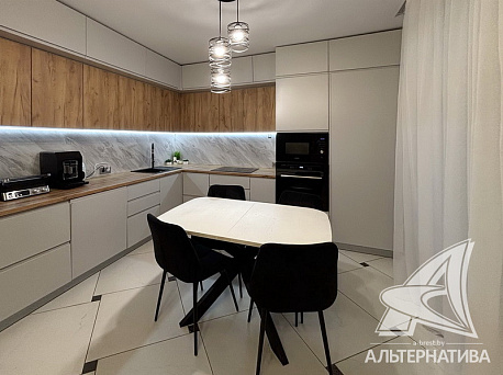 1-комнатная квартира, г. Брест, ул. Мытная, 2023 г.п., 4 / 10 монолит, 38,6 / 36,9 / 31,5 / -, санузел совмещенный, лоджия застеклена, стеклопакеты, межкомнатные двери - шпон, входная дверь металлическая, натяжные потолки - сатин, полы (положены на стяжку) - ламинат и плитка (в кухне, на лоджии), стены оклеены обоями, в санузле современная плитка, заменен полотенцесушитель, душевая кабина, домофон. Кухонный гарнитур, вытяжка, посудомоечная машина, духовой шкаф, варочная поверхность, холодильник, микроволновая печь, обеденная группа, шкаф (в прихожей), зеркало и тумба (в ванной), тумба (в прихожей). Квартира с индивидуальными дизайнерскими решениями. Чистый подъезд. Один грузопассажирский лифт. На площадке имеется закрытое место для колясок и велосипедов. Во дворе игровая детская площадка, парковка для автомобилей.