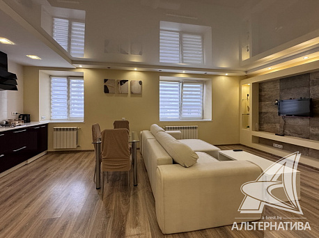 1-комнатная квартира, г. Брест, ул. Карбышева, 1994 г.п., 2 / 9 кирпич, 36,7 / 36,7 / 19,7 / 7,4, санузел раздельный, стеклопакеты, межкомнатные двери - шпон, входная дверь металлическая, многоуровневые потолки с разноплановой системой освещения (2,5 м) - из гипсокартона и натяжные (глянец), полы (положены на стяжку) - ламинат, стены - декоративная окраска, в санузле современная плитка, душевая кабина, домофон. Остается вся мебель, кроме дивана. Квартира с хорошим ремонтом.
