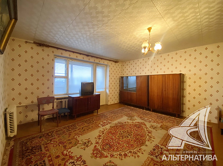 1-комнатная квартира, г. Брест, ул. Московская, 1977 г.п., 9 / 9 кирпич, 40,7 / 39,0 / 22,1 / 7,3, санузел раздельный, балкон, подвал, деревянные межкомнатные двери, входная дверь деревянная, потолки - оклеены касетонами, полы - крашеная доска, стены - оклеены обоями, в санузле современная плитка, домофон. В квартире требуется ремонт. Один пассажирский лифт.