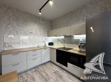 2-комнатная квартира, г. Брест, ул. Гоголя, 2022 г.п., 15 / 18 ж/б каркас + блок, 60,6 / 57,4 / 31,1 / 10,1, санузел раздельный, лоджия застеклена, стеклопакеты, межкомнатные двери - МДФ, входная дверь металлическая, натяжные потолки, полы - линолеум, стены - оклеены обоями, в санузле современная плитка, домофон, видеодомофон. Кухонный гарнитур, индукционная варочная поверхность, духовой шкаф, микроволновая печь, холодильник, телевизор, стиральная машина, обеденная группа (в кухне), кровать и две прикроватные тумбы (в спальне), комод, шкаф, диван (в зале). Квартира с хорошим ремонтом. Два пассажирских и один грузовой лифты. Во дворе игровая детская площадка, парковка для автомобилей.