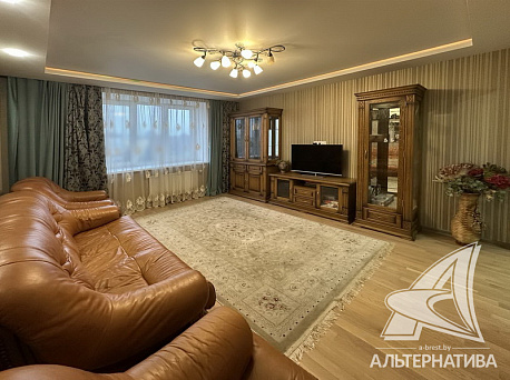 3-комнатная квартира, г. Брест, ул. Гоголя, 2015 г.п., 5 / 10 кирпич, 71,3 / 66,2 / 39,5 / 10,5, санузел раздельный, две лоджии застеклены, стеклопакеты, межкомнатные двери - массив, входная дверь металлическая, потолки (2,5 м) - снежка, полы - паркетная доска и плитка, есть подогрев пола (в кухне, в санузле), на стенах венецианская штукатурка и обои, домофон. Кухонный гарнитур, встроенная бытовая техника (варочная поверхность, духовой шкаф, посудомоечная машина, микроволновая печь - все фирмы Whirlpool), мебель в ванной, мебель на лоджиях. Квартира с хорошим ремонтом. Тамбур на две квартиры. Один грузопассажирский лифт. Шикарный вид из окон на городской парк, колесо обозрения. В шаговой доступности Брестская крепость, Парк культуры и отдыха, стадион, школа, детский сад.