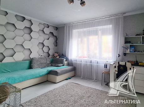 Доля (1/2) в двухкомнатной квартире, г. Брест, б-р Космонавтов, 1980 г.п., 4 / 9 кирпич, 52,5 / 50,8 / 29,6 / 8,0, санузел раздельный, лоджия застеклена, стеклопакеты, межкомнатные двери - МДФ, входная дверь металлическая, потолки (2,50 м) - снежка, полы (положены на стяжку) - ламинат и плитка, на стенах декоративная отделка штукатуркой, отделка камнем и обои, в санузле современная плитка, заменена сантехника, заменены сантехнические трубы, проведена новая электропроводка (в кухне, в спальне), установлены фильтры очистки воды. Кухонный гарнитур, газовая плита, холодильник, диван, телевизор, мебель в прихожей, мебель в спальне, мебель в детской, светильники, стиральная машина. Квартира с хорошим ремонтом. На этаже оборудована кладовая. Система видеонаблюдения в подъезде. Запланирован ремонт и замена входной двери в подъезд. Все окна выходят во двор. Возможна покупка всей квартиры!