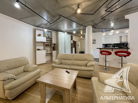 2-комнатная квартира, г. Брест, ул. Маяковского, 2011 г.п., 4 / 9 кирпич, 71,8 / 69,3 / 42,9 / 11,9, санузел раздельный, лоджия застеклена, деревянные стеклопакеты, межкомнатные двери - массив (дуб), входная дверь металлическая, многоуровневые потолки, полы - плитка и паркет (ясень), стены - декоративная окраска, в санузле современная плитка, заменена сантехника, заменен полотенцесушитель, душевая кабина, телефон, домофон. Мебель по договоренности. Квартира с индивидуальными дизайнерскими решениями. Чистый подъезд. Один грузопассажирский лифт. Во дворе игровая детская площадка, парковка для автомобилей.