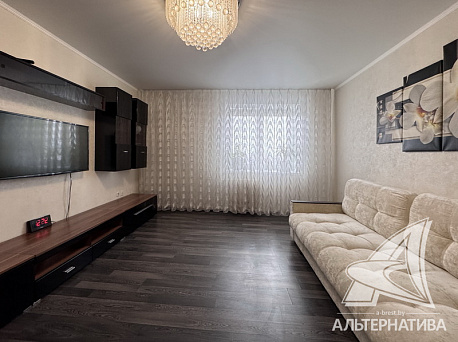 Для оформления комнат использована контрастная цветовая гамма, интерьер отличается стильным дизайном. Сделан хороший ремонт: натяжные глянцевые потолки 2,55 м, в комнатах – сатиновые, полы – ламинат, в кухне – плитка, стены оклеены обоями. Для облицовки санузла использована современная плитка, заменен полотенцесушитель, акриловая ванна. Установлены фильтры очистки питьевой воды. В общую стоимость входят шкаф-купе, кухонный гарнитур с бытовой техникой: варочная поверхность, вытяжка, духовой шкаф. Сантехника и холодильник остаются по договоренности. Телефон, домофон, грузопассажирский лифт. Во дворе имеются игровая детская площадка, парковка для автомобилей. Центральная часть города – идеальное место для семейных и дружеских прогулок, где можно приобщиться к искусству и насладиться красотой архитектуры. В пешей доступности парк 1 Мая, Брестская крепость, живописные аллеи и улочки, известные исторические памятники, храмы, библиотеки, Брестский академический театр драмы, фитнес-центры, салоны и уличные кафе.