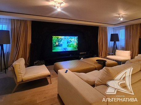 5-комнатная квартира, г. Брест, ул. Халтурина, 1999 г.п., 9, 10 / 10 кирпич, 253,1 / 247,9 / 137,4 / 32,6, два санузла, два балкона, стеклопакеты, межкомнатные двери скрытого монтажа, входная дверь двойная металлическая, комбинированные потолки с разноплановой системой освещения - из гипсокартона (2,48 м), полы - натуральный камень (2 см) и натуральное дерево (массив, 2 см), есть подогрев пола, стены - декоративная окраска и отделка камнем, в санузле современная плитка, заменена сантехника, заменен полотенцесушитель, инсталляция, проведена новая электропроводка, установлены новые радиаторы, установлена система вентиляции ( приточно-вытяжная). Кухонный гарнитур, встроенная техника Mile, сантехника (Италия), мебель (Италия). Квартира с индивидуальными дизайнерскими решениями. Тамбур на две квартиры. Один пассажирский лифт.