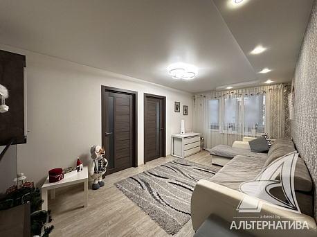 3-комнатная квартира, г. Брест, ул. Молодогвардейская, 1971 г.п., 2 / 5 панель, 50,6 / 49,6 / 34,2 / 5,4, санузел раздельный, балкон, стеклопакеты, межкомнатные двери - экошпон, входная дверь металлическая, потолки - снежка, полы (положены на стяжку) - ламинат, стены оклеены обоями, в санузле современная плитка, заменена сантехника, заменен полотенцесушитель, ванна, заменены сантехнические трубы, домофон. Кухонный гарнитур, варочная поверхность, встроенные шкафы-купе. Квартира с хорошим ремонтом. Квартира расположена на две стороны. Чистый подъезд.